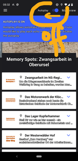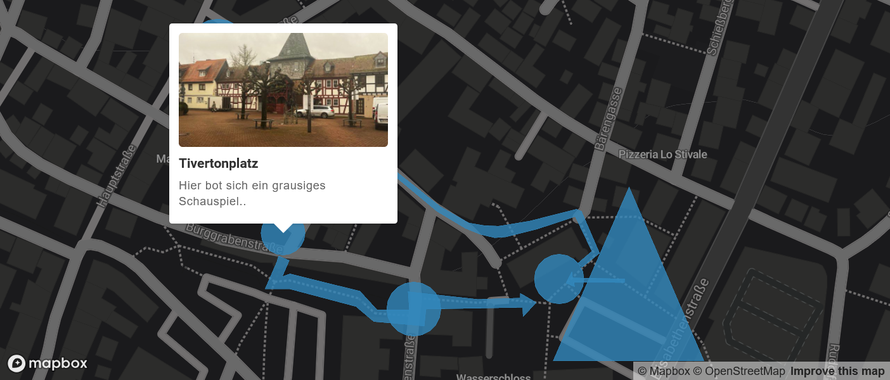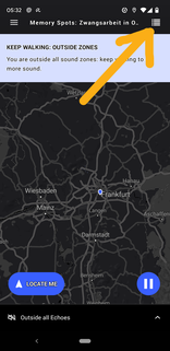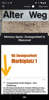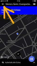 Auf den Karten sieht man blaue Markierungen/Kreise. Das ist der Radius in dem das Audio gehört werden kann. In diese blauen Markierungen läuft man hinein und das Audio startet.